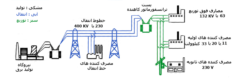شبکۀ انرژی الکتریکی جهت انتقال الکتریسیته از نیروگاه ها به محل مصرف، به سه بخش اصلی تولید، انتقال و توزیع برق تقسیم می شود. البته بخش دیگری به نام فوق توزیع نیز به این موارد اضافه می شود که به دلیل هم پوشانی سطوح ولتاژی و شباهت زیاد روش های کارکرد و حفاظت آن با بخش انتقال، می توان آن را زیر مجموعه ای از شبکه ی انتقال در نظر گرفت.