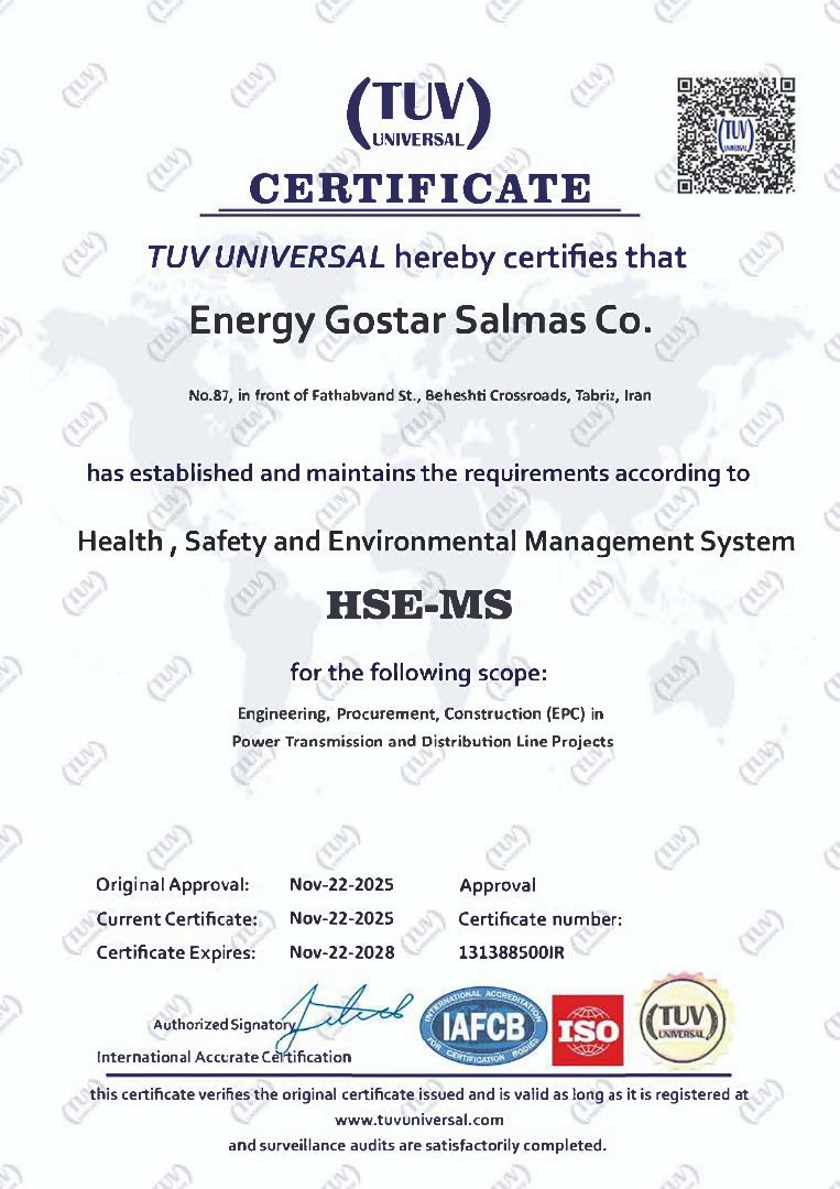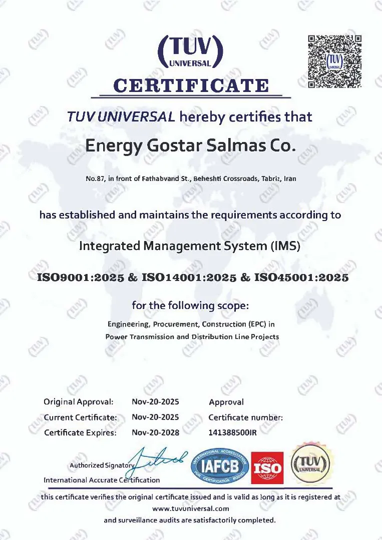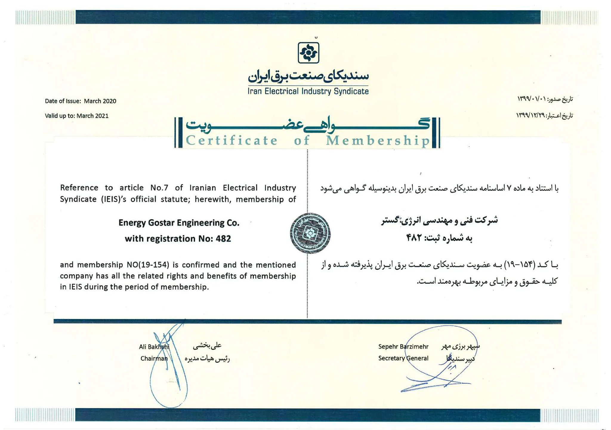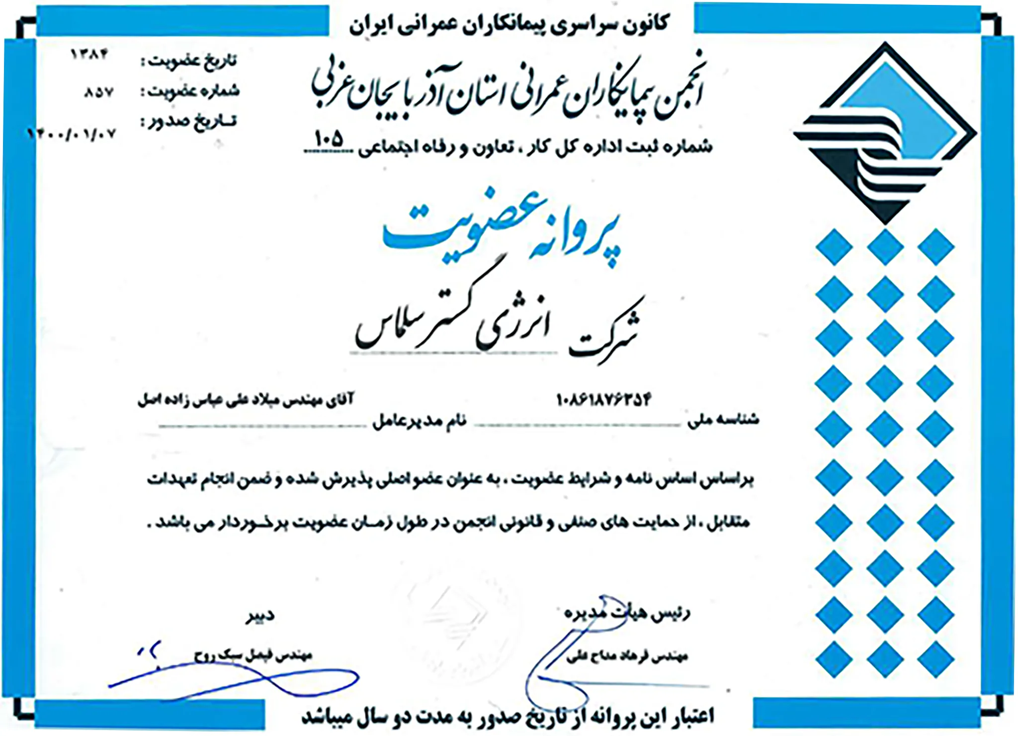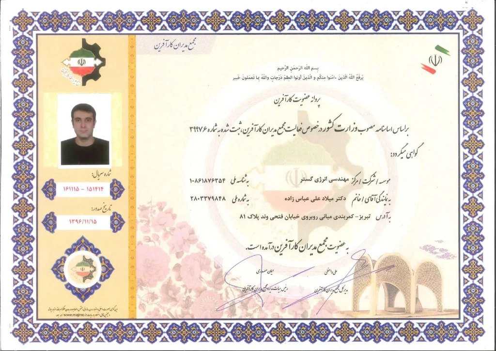گواهینامه ها و تقدیر نامه ها | شرکت انرژی گستر سلماس - Energy Gostar