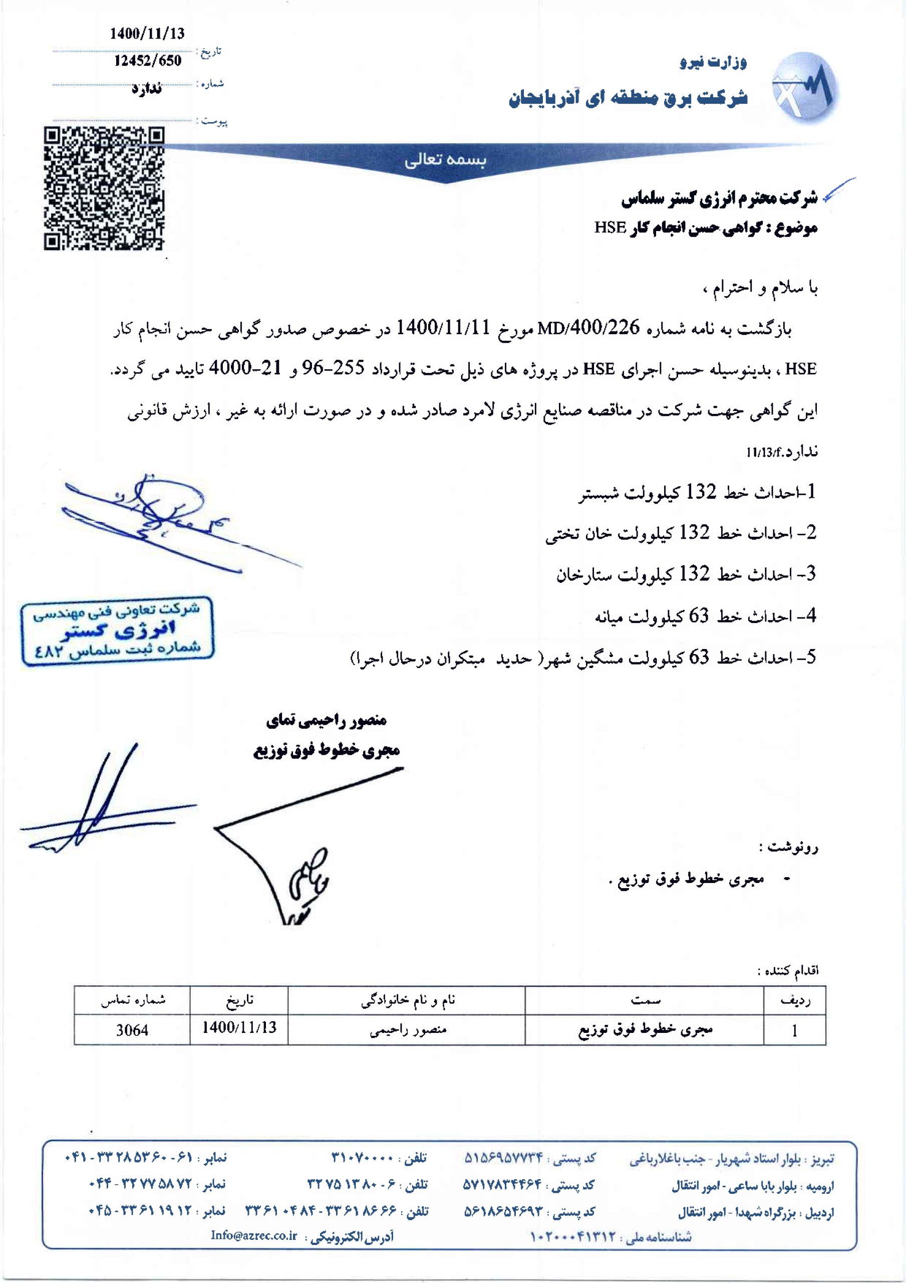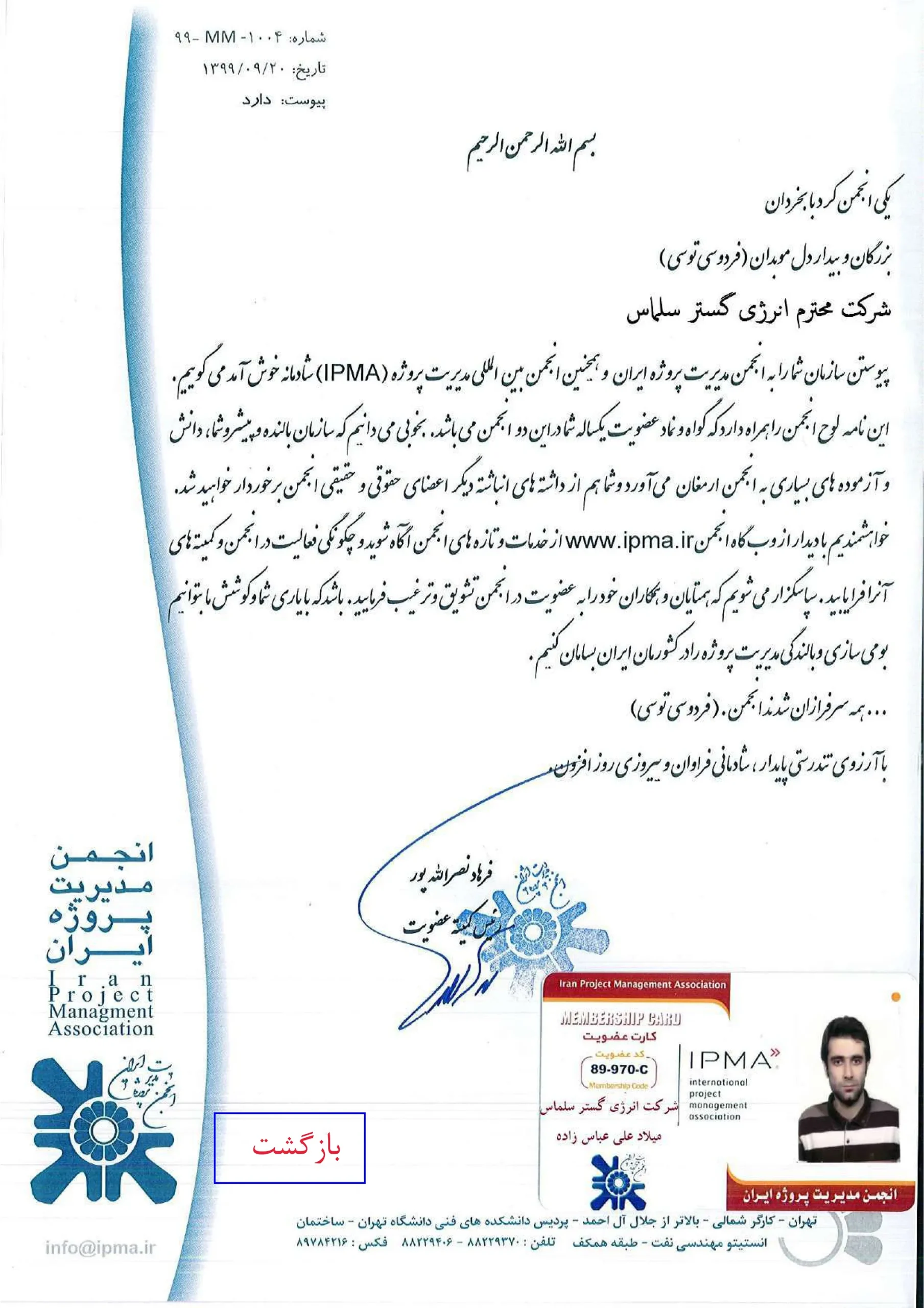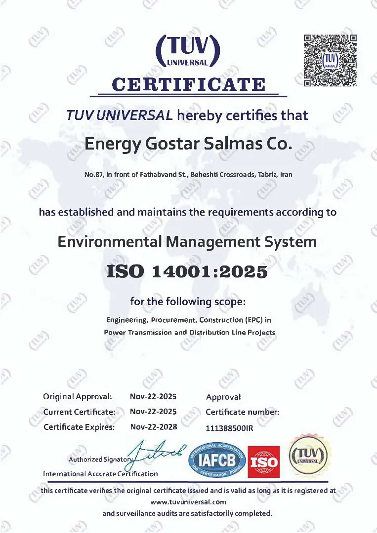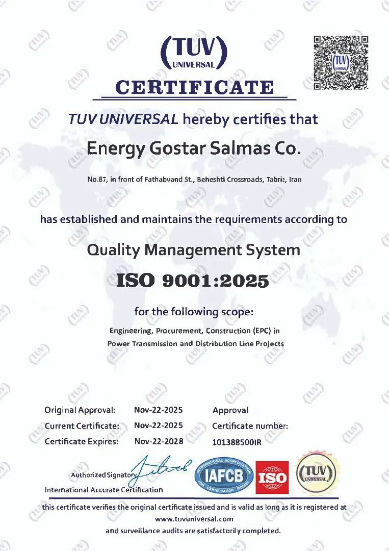 گواهینامه ها و تقدیر نامه ها | شرکت انرژی گستر سلماس - Energy Gostar